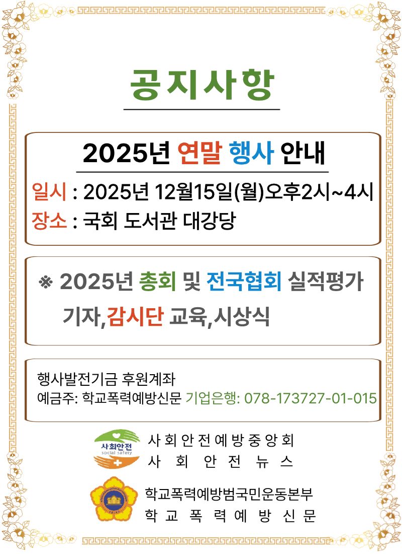 2025³â ¿¬¸» Çà»ç ¾È³» ÀϽÃ: 2025³â 12¿ù 15ÀÏ (¿ù) ¿ÀÈÄ2½Ã~4½Ã
